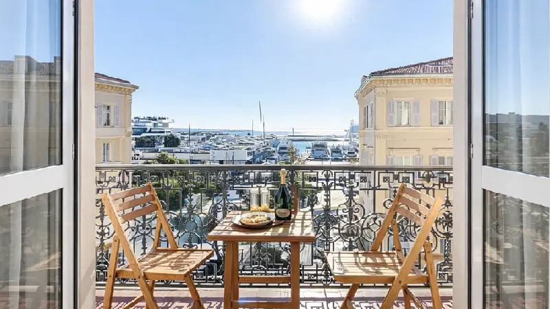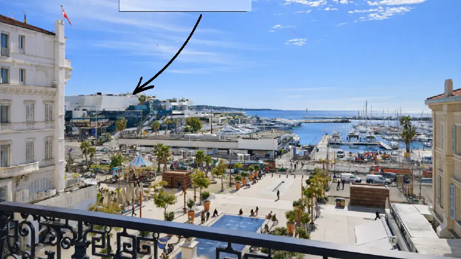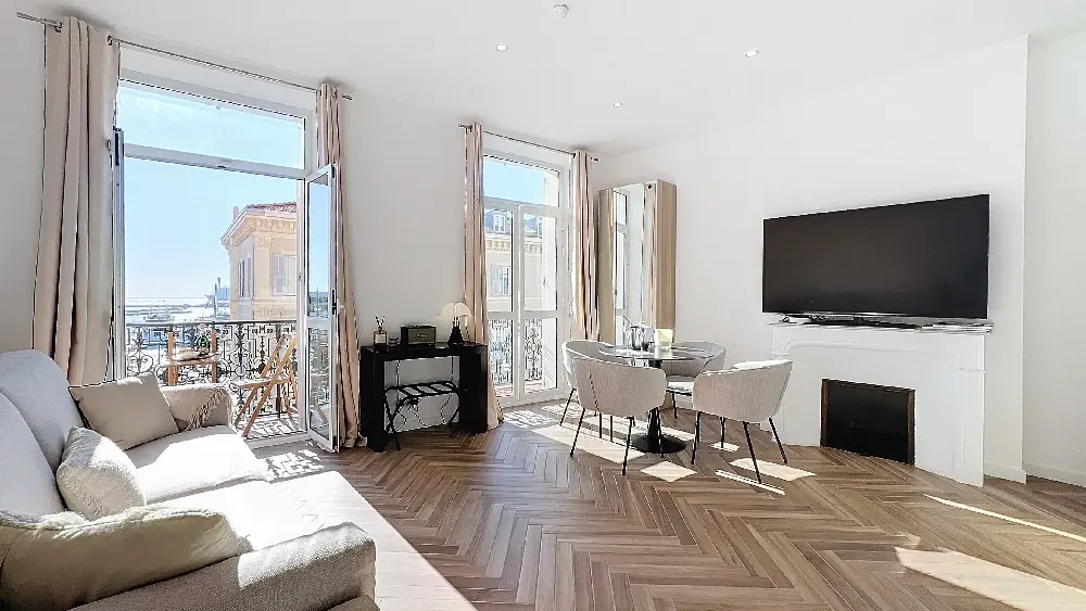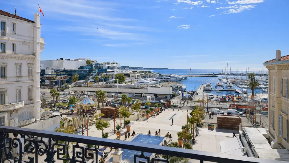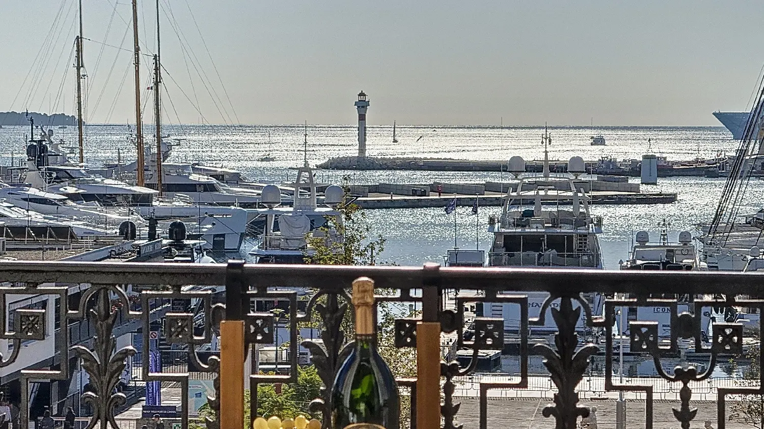 • Grand séjour avec vue époustoufflante sur le port de Cannes, la citadelle et la célèbre rue Felix Faure.