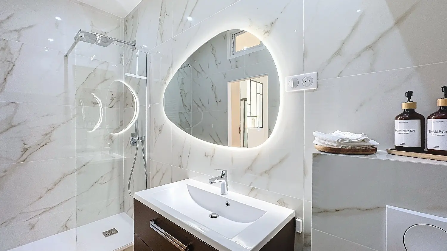 • La salle de bain dispose d’une douche à l’italienne et de linge de bain fourni