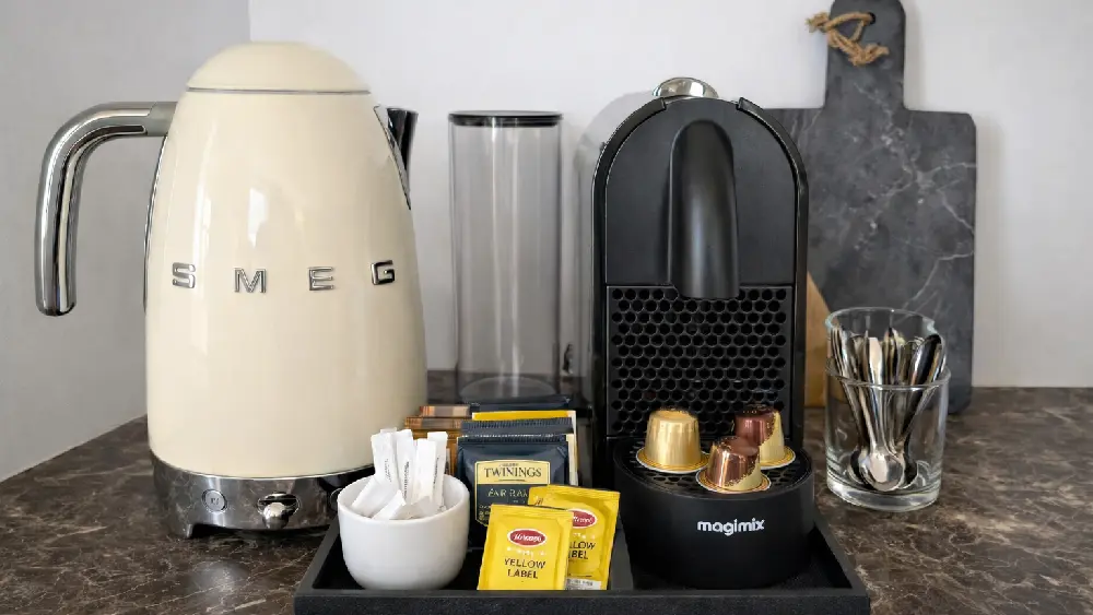 • Cuisine équipée (Four, micro onde, plaques induction, Bouilloire SMEG, Cafetière Nespresso, Lave Vaisselle, Machine à laver le linge, Réfrigérateur/congélateur, vaisselle et ustensiles de cuisine)