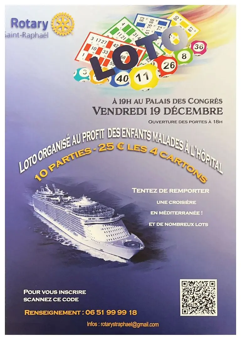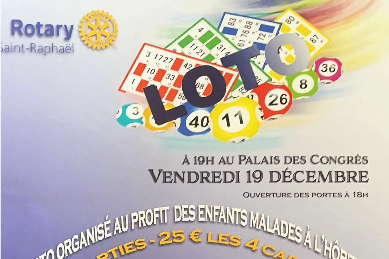 Venez participer nombreux au Super Loto du Rotary Club de Saint-Raphaël au profit des enfants malades à l'Hôpital, de très beaux lots à gagner !