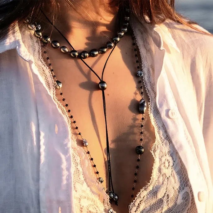 Chaque perle de Tahiti est choisie avec soin, ainsi que tous les matériaux nécessaires au montage des bracelets, colliers et bagues.