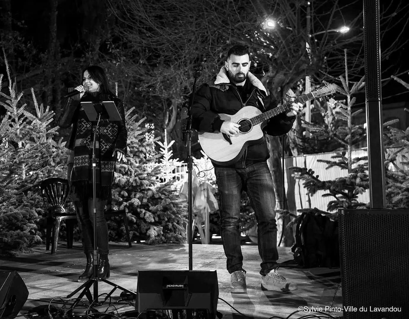 Concerts au marché de Noël du Lavandou tous les soirs du 1er au 30 décembre. Gratuit. Concert avec The Universe, duo soul, pop et variétés internationales