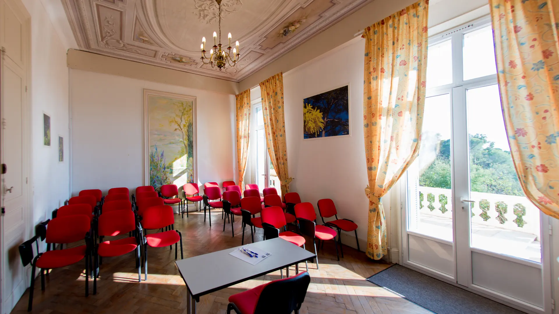 Espace disponible pour co-working, salle de séminaires/colloques de 100 places, 4 salles de travail de 12 à 25 places..