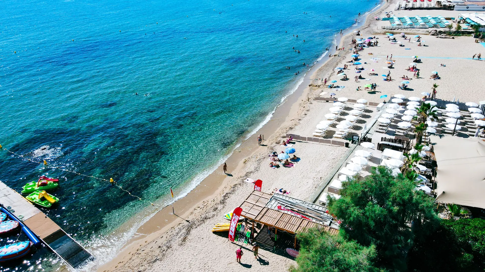 Profitez du cadre idyllique de la plage de Nartelle, un lieu prisé pour ses eaux claires et son ambiance chaleureuse. Avec plus de 30 ans d'expérience, notre équipe met un point d'honneur à vous offrir des services de qualité dans une atmosphère familiale et accueillante. Water Glisse Passion Sainte-Maxime est le lieu parfait pour passer une journée inoubliable en famille ou entre amis, à la recherche de sensations fortes et moments de détente, dans une ambiance conviviale et chaleureuse.