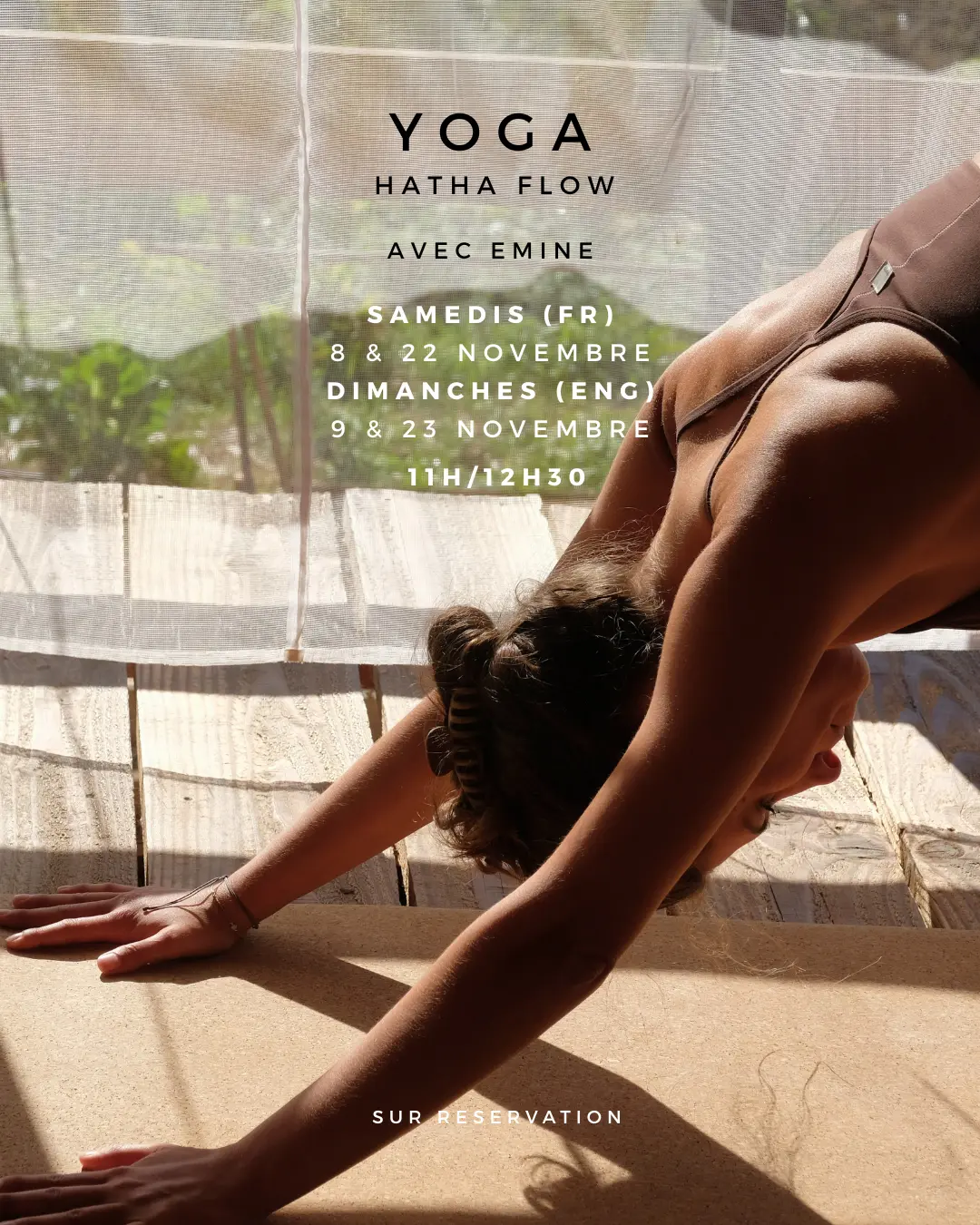 Chaque cours, mêlant Hatha et Vinyasa, s'inspire de thèmes de la vie quotidienne, de la nature et de la reconnexion à soi.